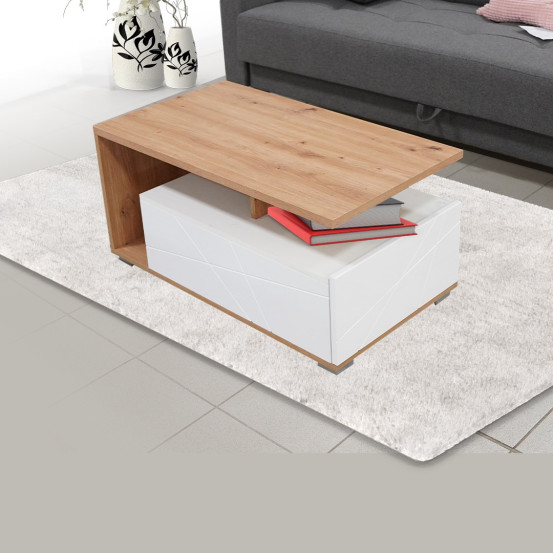 Klub stol omnia moderan je i funkcionalan komad namještaja koji će se savršeno uklopiti u svaki dnevni boravak. Izrađen od kvalitetnog iverala, stol pruža dugotrajnost i stabilnost, a njegova kombinacija boja divlji hrast / bijela unose toplinu i svježinu u prostor. S dimenzijama 42.9 cm visine, 90 cm širine i 50 cm dužine Omnia je idealan za svakodnevnu upotrebu. Jednostavne linije i elegantan kontrast boja čine ga odličnim izborom za moderne i klasične interijere.